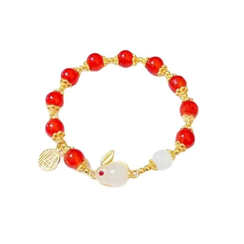 新中式白玉紫水晶红玛瑙手链手串女藏族儿童玻璃手串猫眼石