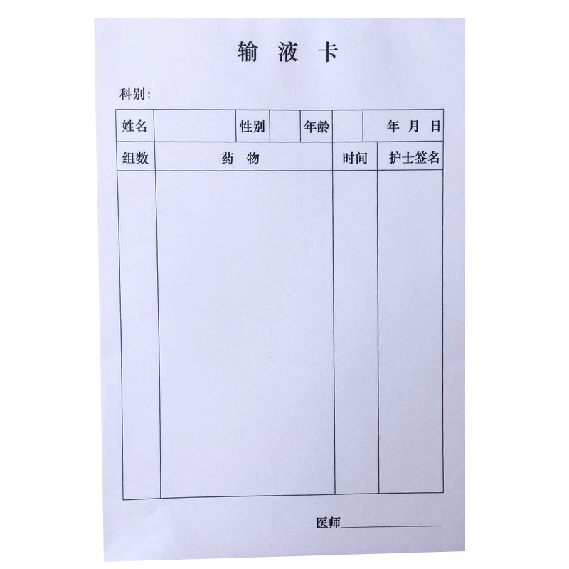 现货医院西医门诊输液卡卫生室输液卡 诊所输液卡 医院输液卡定制