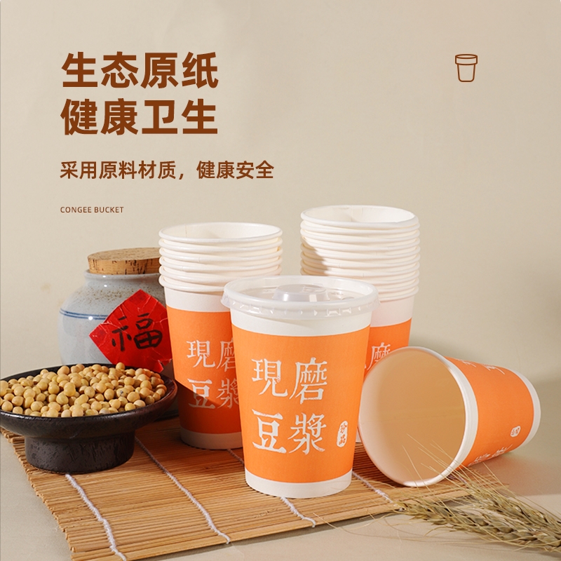 一次性豆浆杯商用加厚现磨带盖吸管袋子早餐专用外带打包豆浆纸杯
