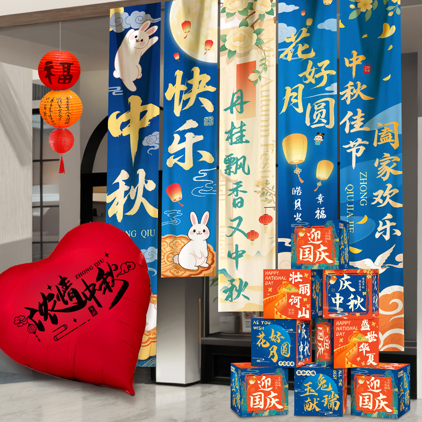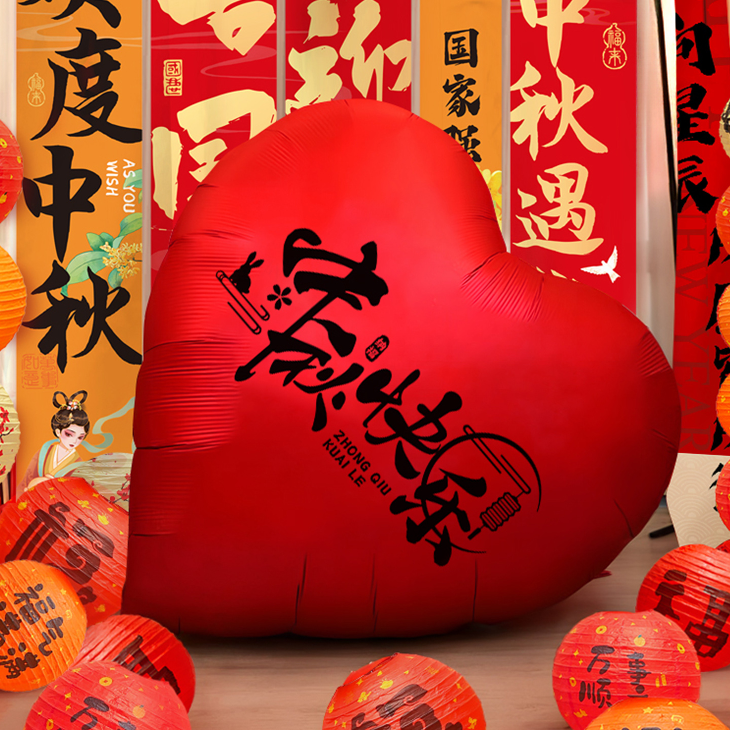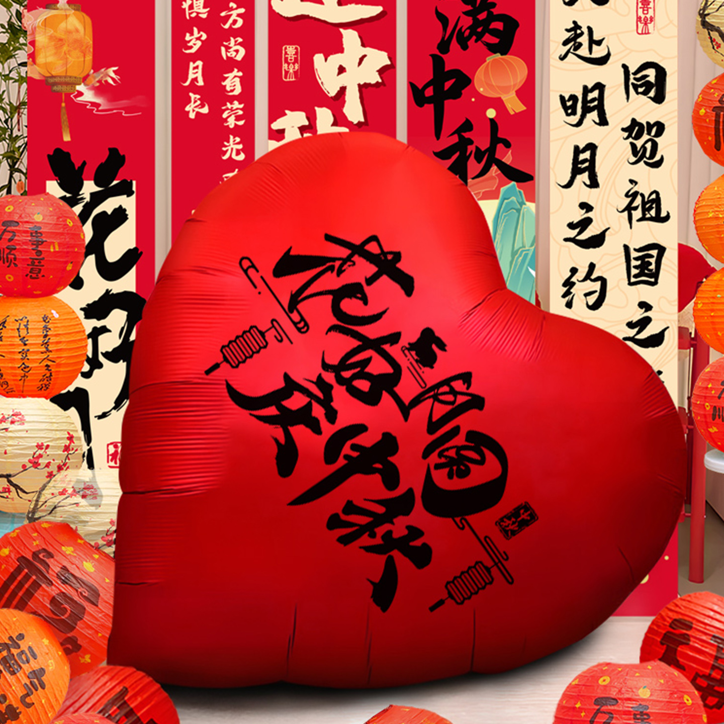中秋国庆节气球装饰主题活动氛围场景布置商场店铺背景墙拍照道具