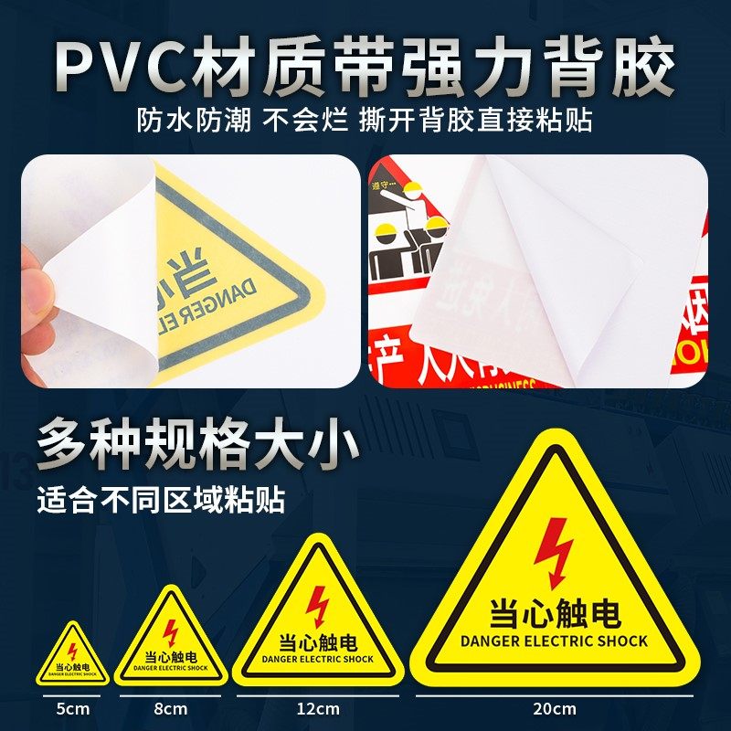 有电危险警示贴当心触电安全警示牌仓库重地严禁烟火消防通道严禁堵塞当心机械伤人当心高温伤手配电箱警示贴