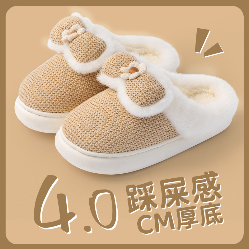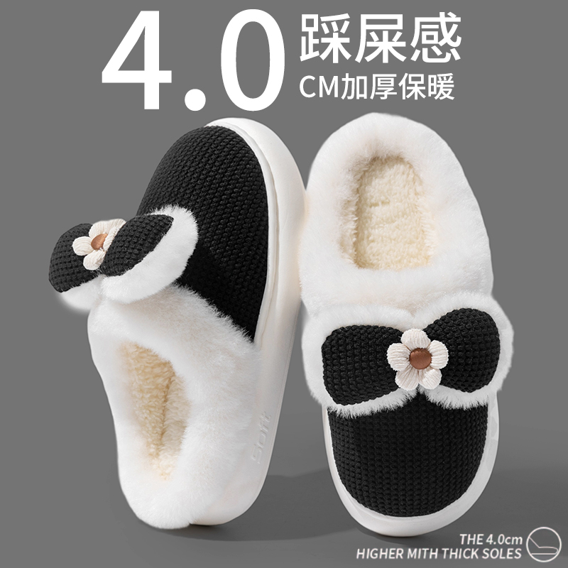 懒人棉拖鞋女室内厚底外穿地板毛绒可爱蝴蝶结棉鞋多规格