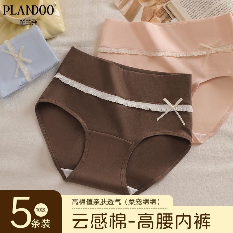 帕兰朵日系高腰全包臀云感少女芭蕾风大码舒适褶皱花边蝴蝶结内裤