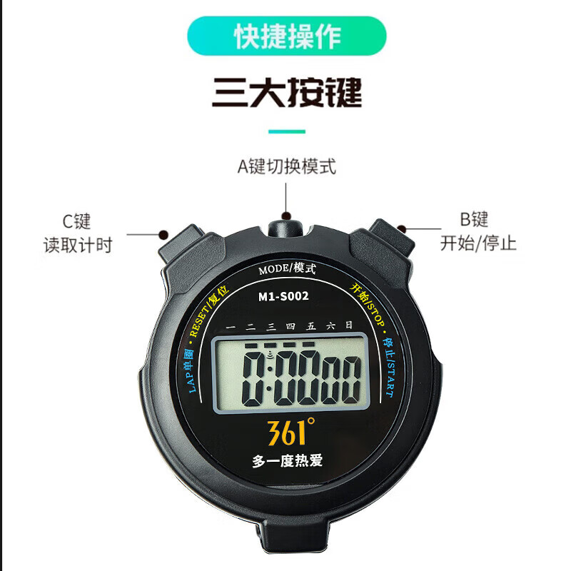 361秒表计时器田径比赛专用多功能电子秒表定时器跑步健身专用