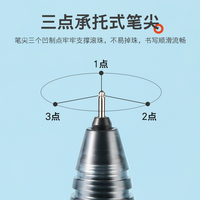 得力直液式走珠笔速干大容量直液笔0.5黑色中性笔学生用速干刷题笔水性笔直液笔圆珠笔商务办公简约风笔杆