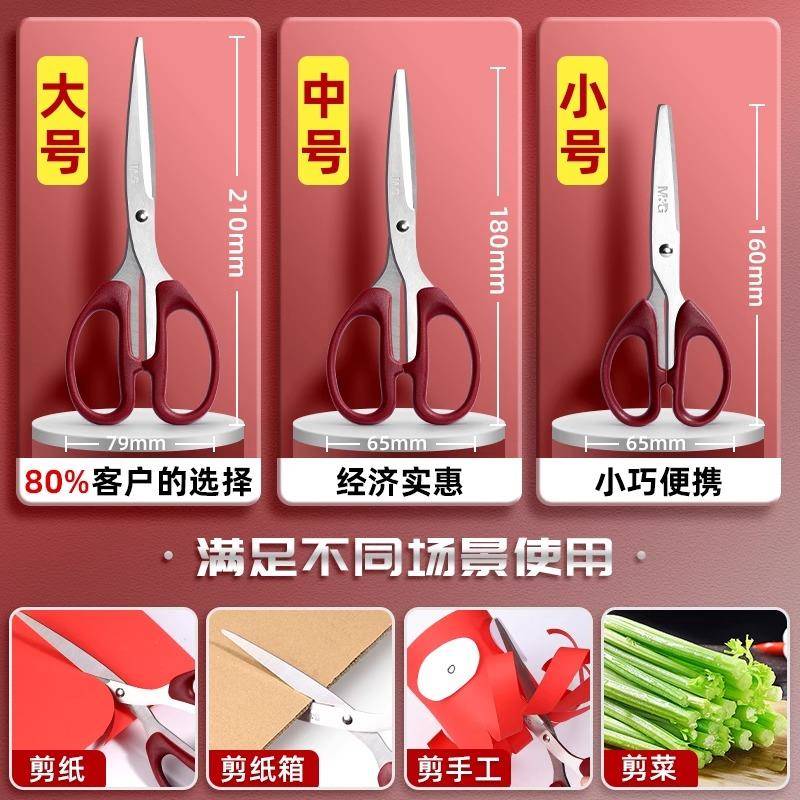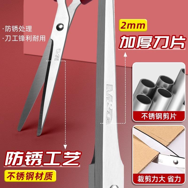 晨光剪刀家用办公专用高颜值厨房锋利耐磨加厚加长大号多功能红色剪子不锈钢剪刀学生手工剪纸美工不粘胶升级