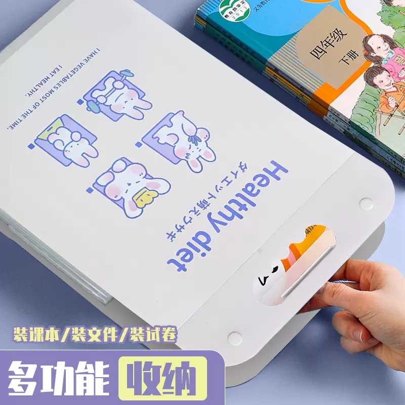 卡通竖款手提式风琴包文件夹小学生大容量13入试卷收纳袋ins风可爱高颜值韩版初中生多层试卷整理神器资料册