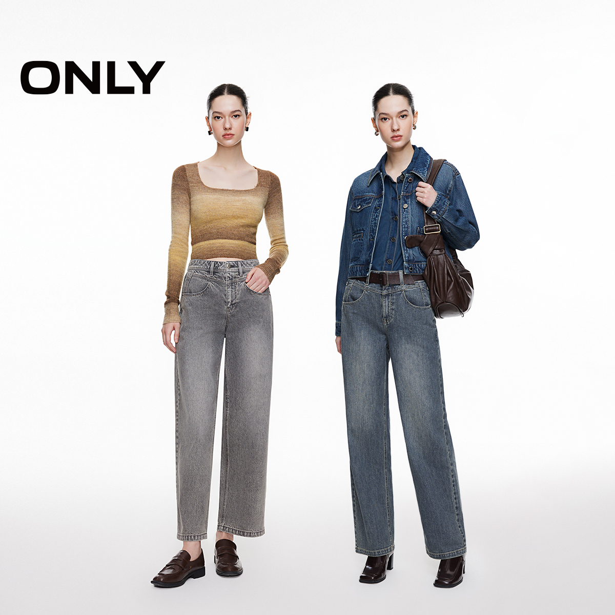 ONLY2025冬季新款腹部V字剪裁宽松高腰显瘦九分裤男友裤牛仔裤女