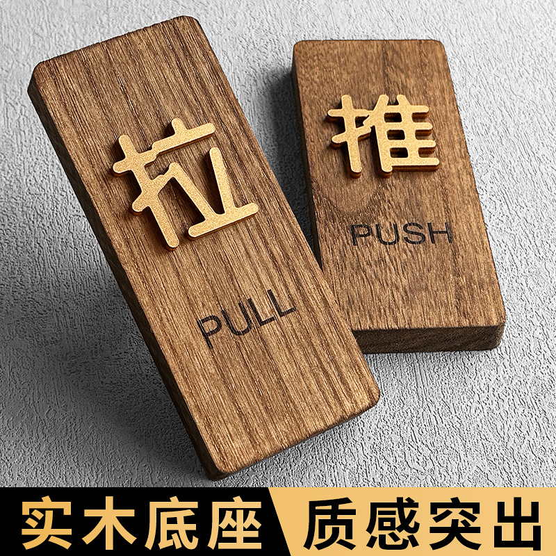 木质推拉门贴提示牌门店玻璃门门上拉字推字创意标志牌子门口左右移门防撞标识贴纸高级实木推门指示标牌定制