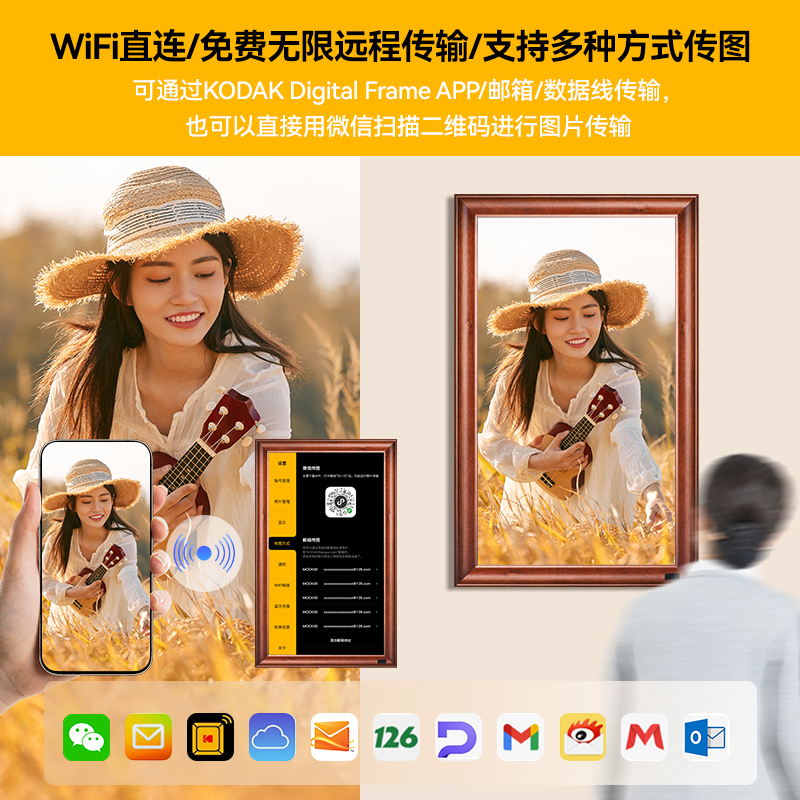 柯达KODAK大尺寸电子数码相册高清播放器多功能数码相框智能家用32英寸艺术画屏画框类纸屏护眼挂屏实木外框