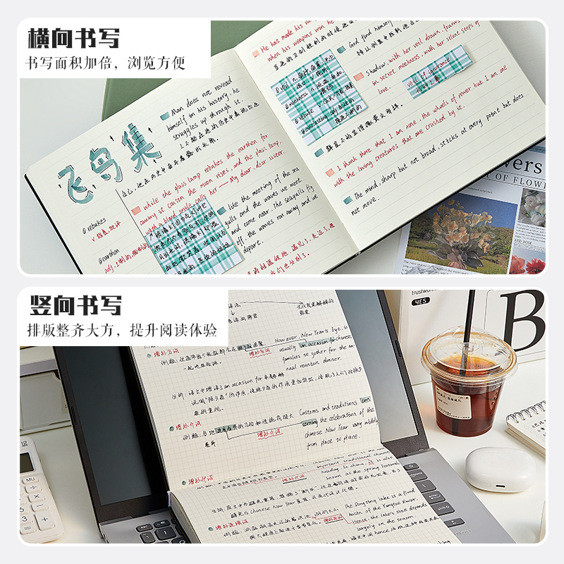 上翻活页笔记本可拆卸方格本网格本子高颜值初中生专用高中格子小方格方形本复古考研加厚2025新款文具草稿纸