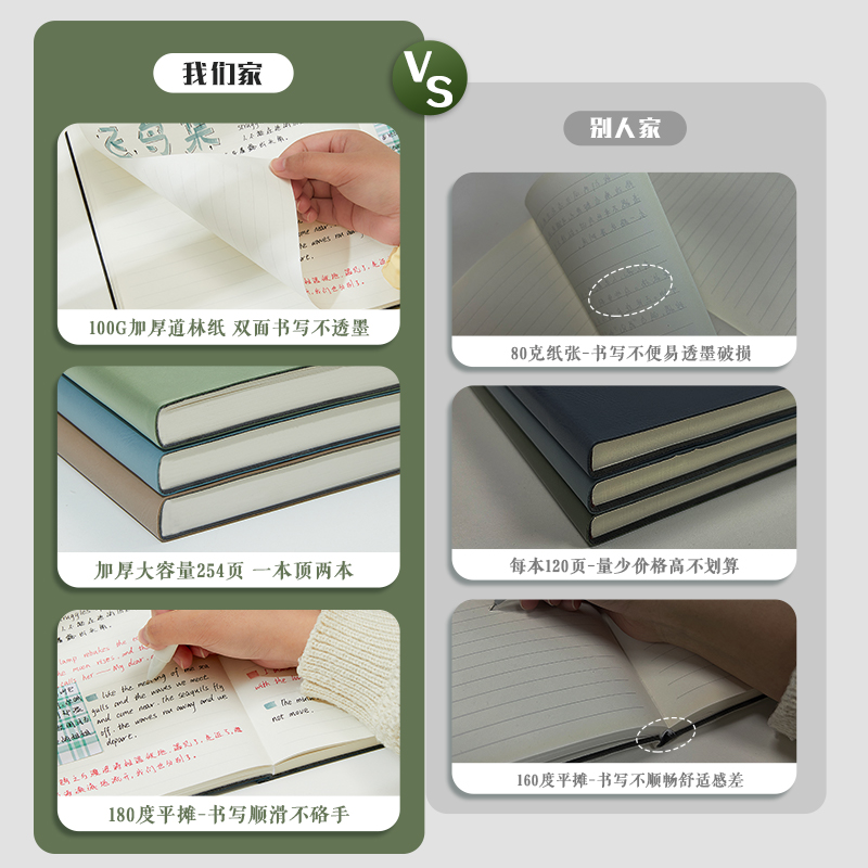 复古牛皮纸笔记本超厚空白本子加厚白纸本草稿本学习可平摊高颜值本记事本日记本a4a5小方格写作本大学生初中