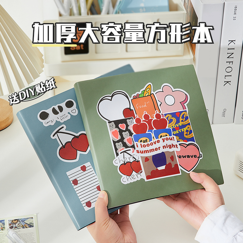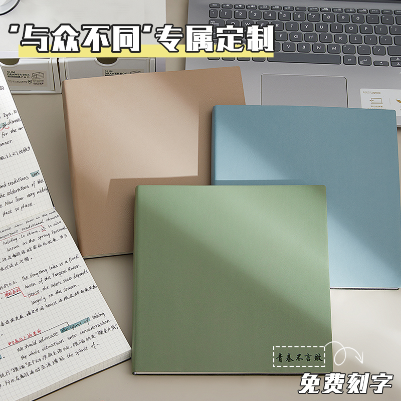 笔记本方形本大号本子方方本高颜值加厚网格方格空白盖章本手账大学生学习考研软皮面简约ins风日记本记事本