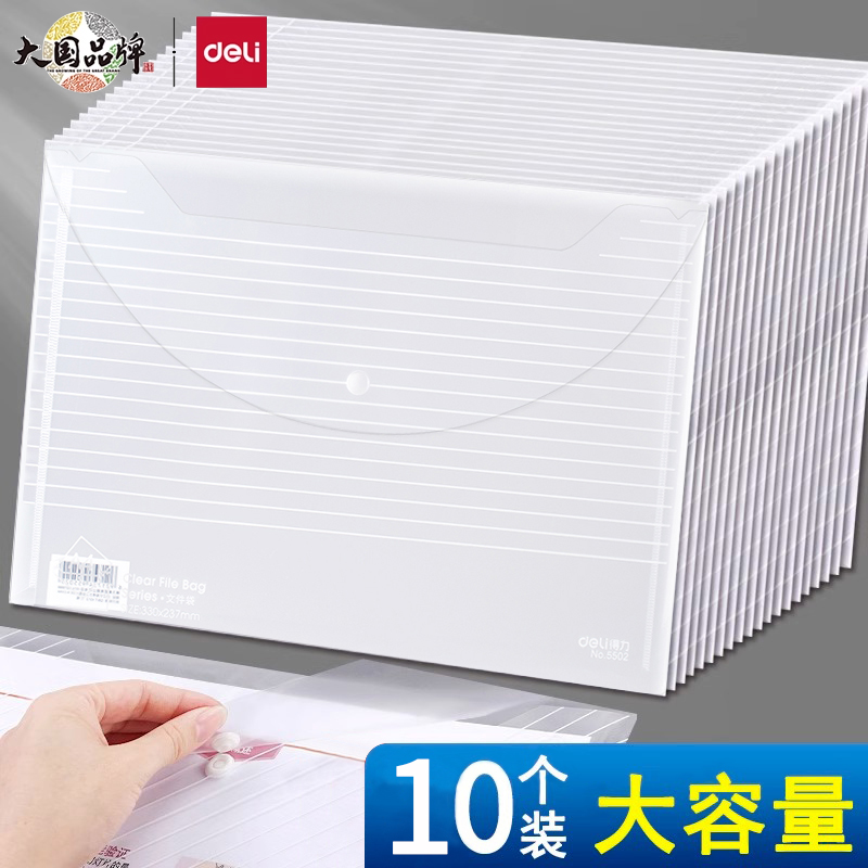 得力5502文件袋资料袋A4透明按扣公文袋试卷袋扣袋档案袋文件套防水袋10个价多省包邮