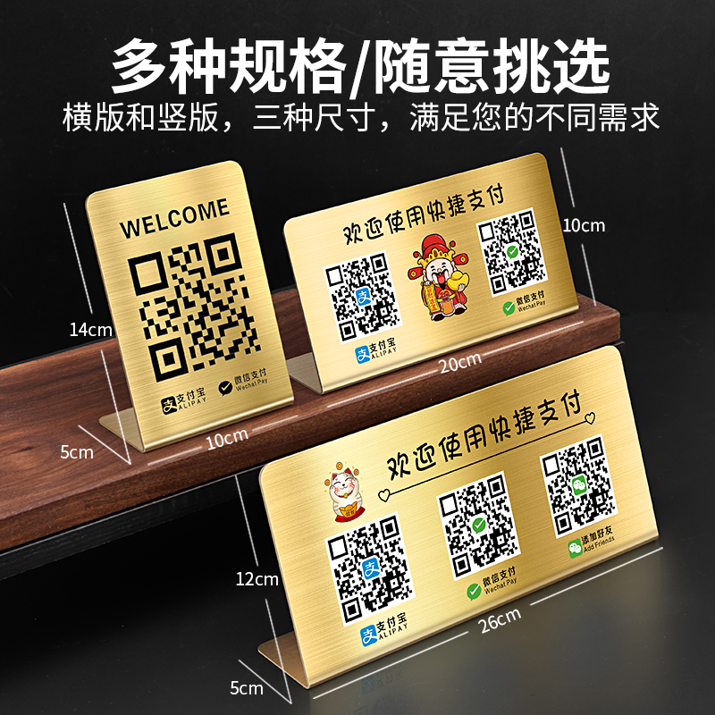 收付款二维码展示牌收款码服装店店铺收银台不锈钢创意高级摆台银联云闪付扫码支付收钱信息台卡广告牌子制作