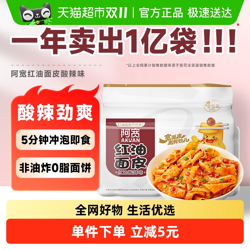阿宽红油面皮超市装速食方便面泡面非火鸡面早餐