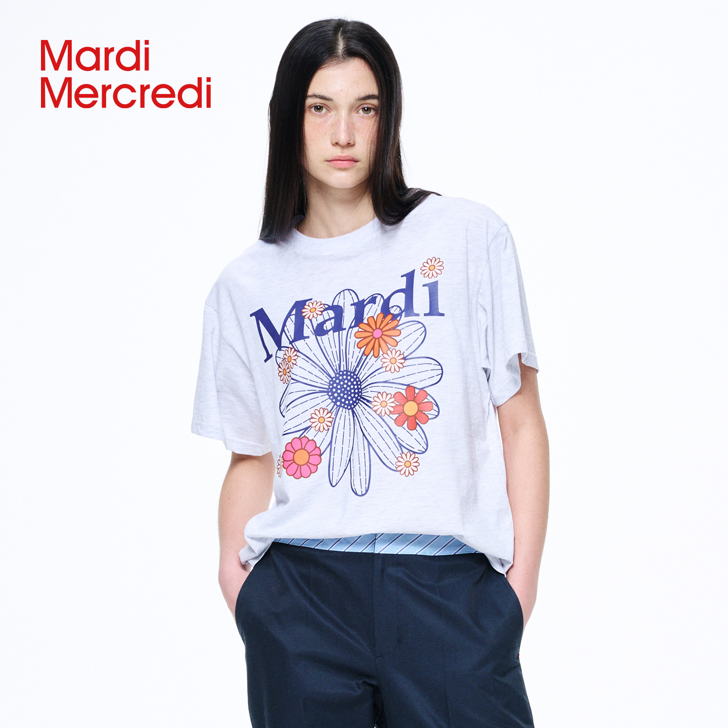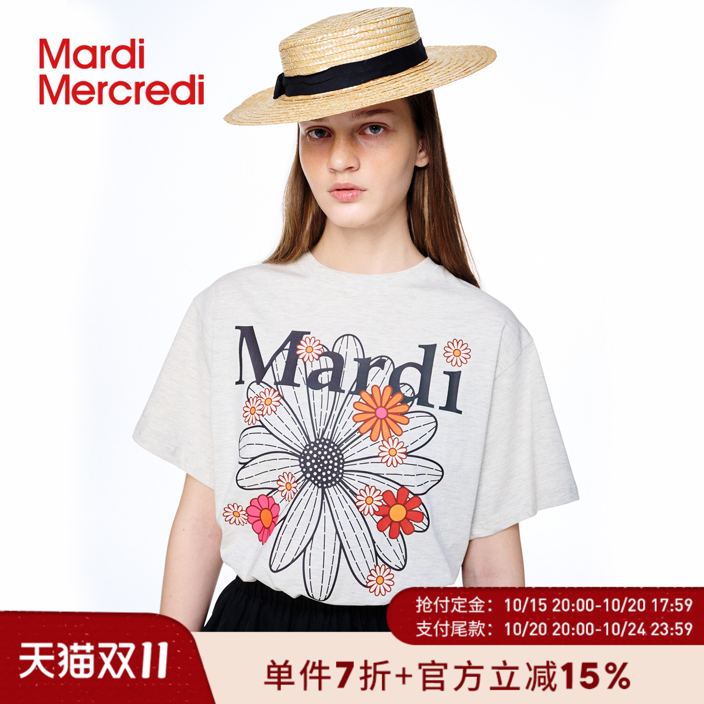 MardiMercredi小雏菊百合三花短袖t恤宽松上衣女夏季新款多巴胺
