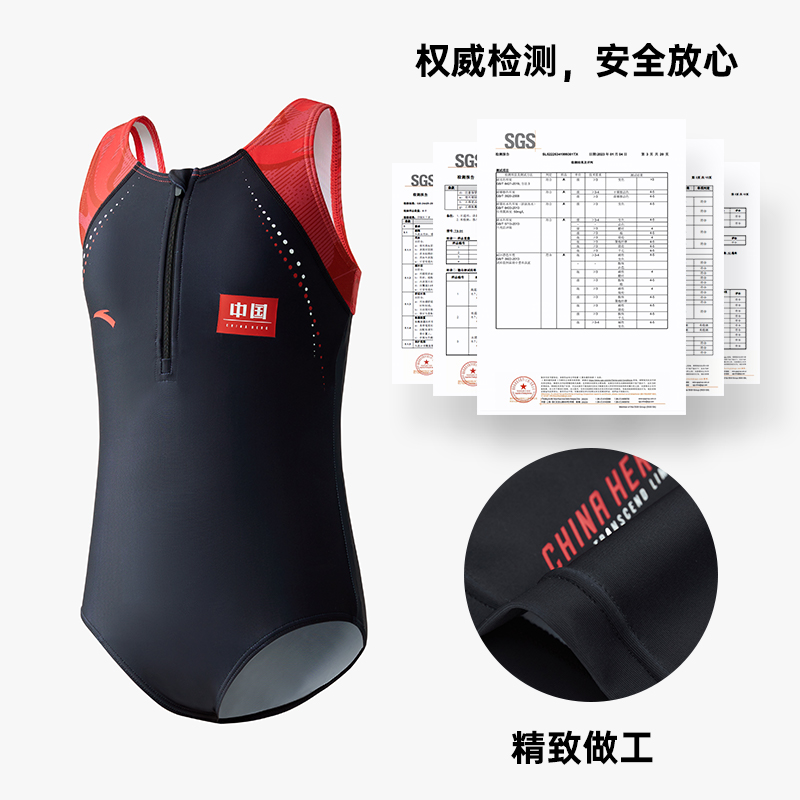 安踏儿童三角连体泳装女童防晒抗氯泳衣2023夏季新款游泳训练旗舰