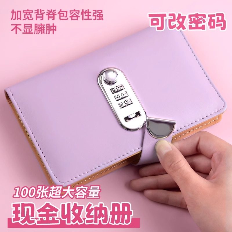 密码现金存钱本2025年新款大容量纸币收纳袋只可放现金收纳册小孩儿童理财专用密码锁防水拉链袋存钱夹钱册
