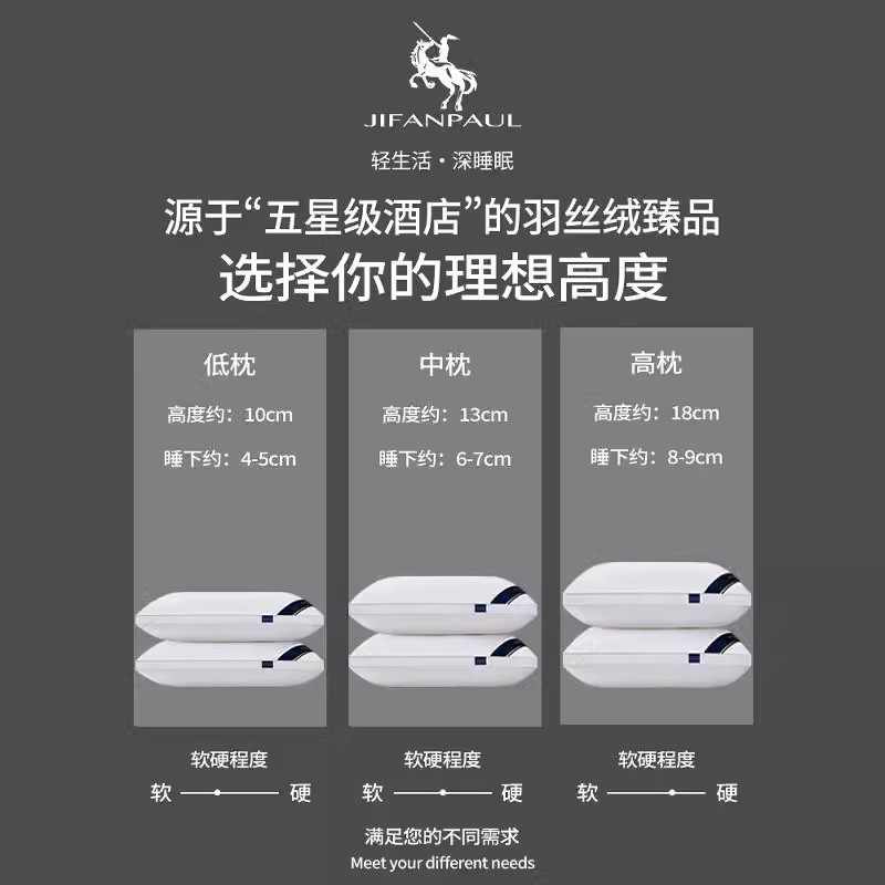 五星级酒店枕头枕芯一对男士护颈椎家用单人一只装成人高枕不塌陷