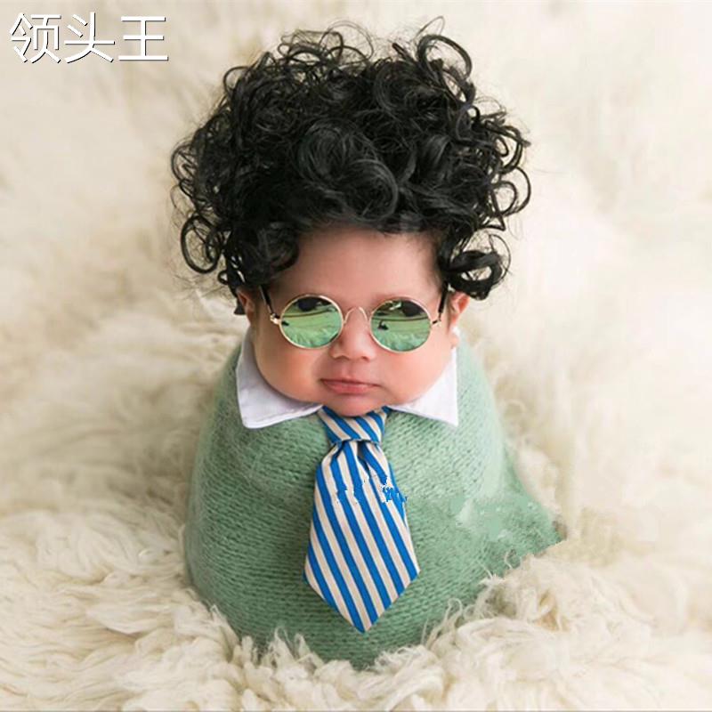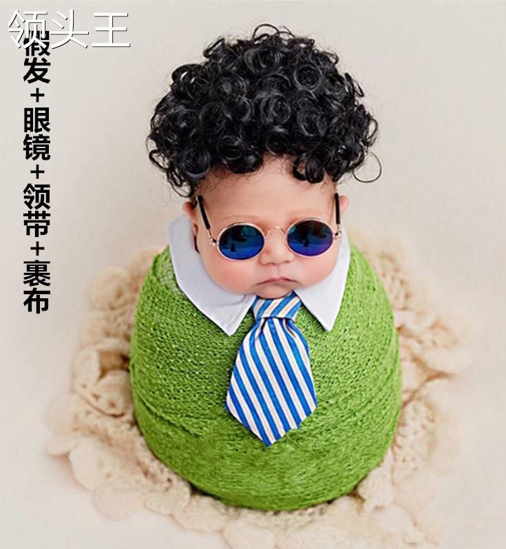影楼上门摄影新生儿满月百天主题道具假发领带墨镜可爱社会人组合