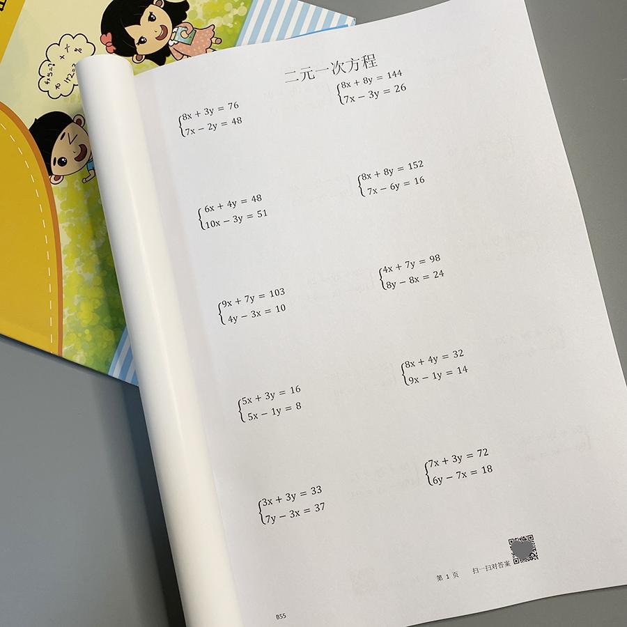 解方程运算练习本小学生数学二元一次方程等分步计算练习本纸