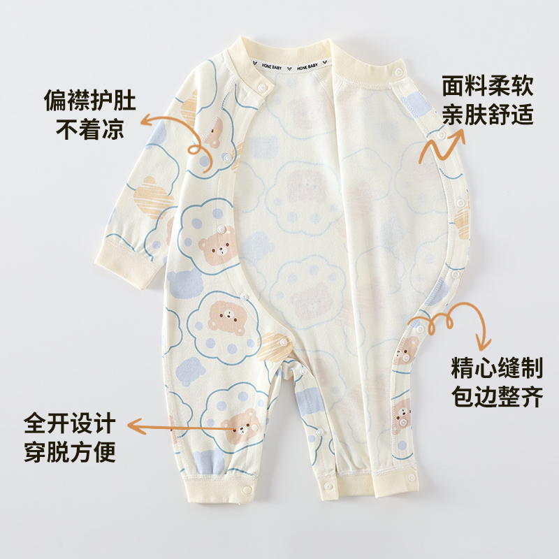 婴儿无骨春秋冬装连体衣新生儿纯棉宝宝衣服爬服哈衣爬行服系带