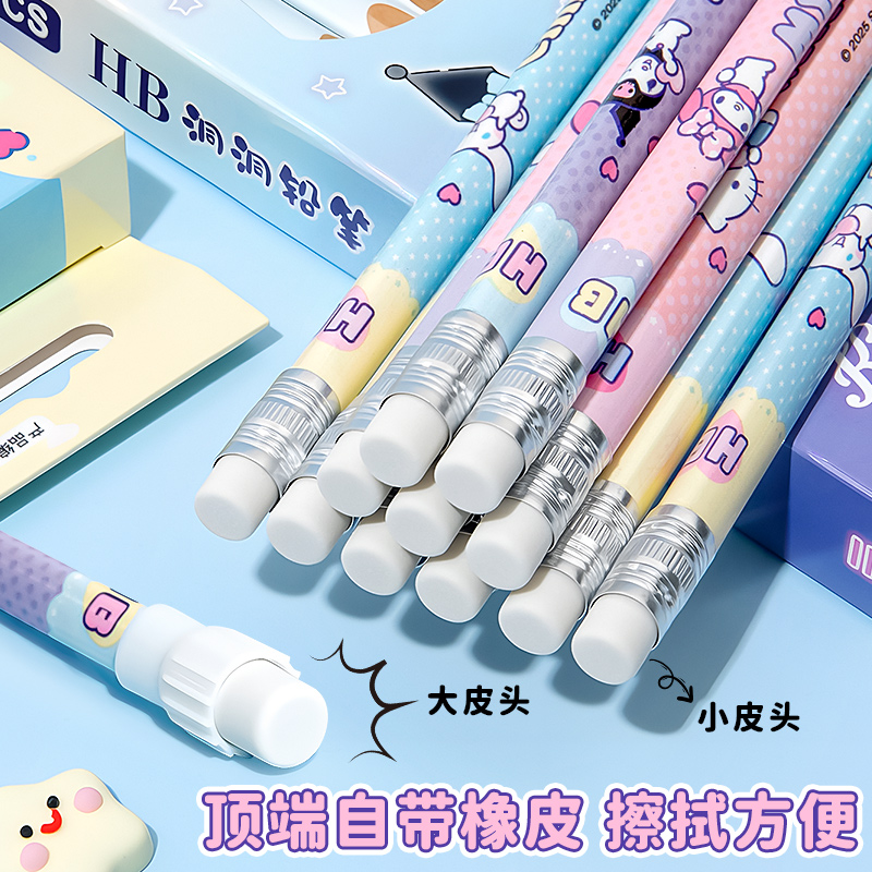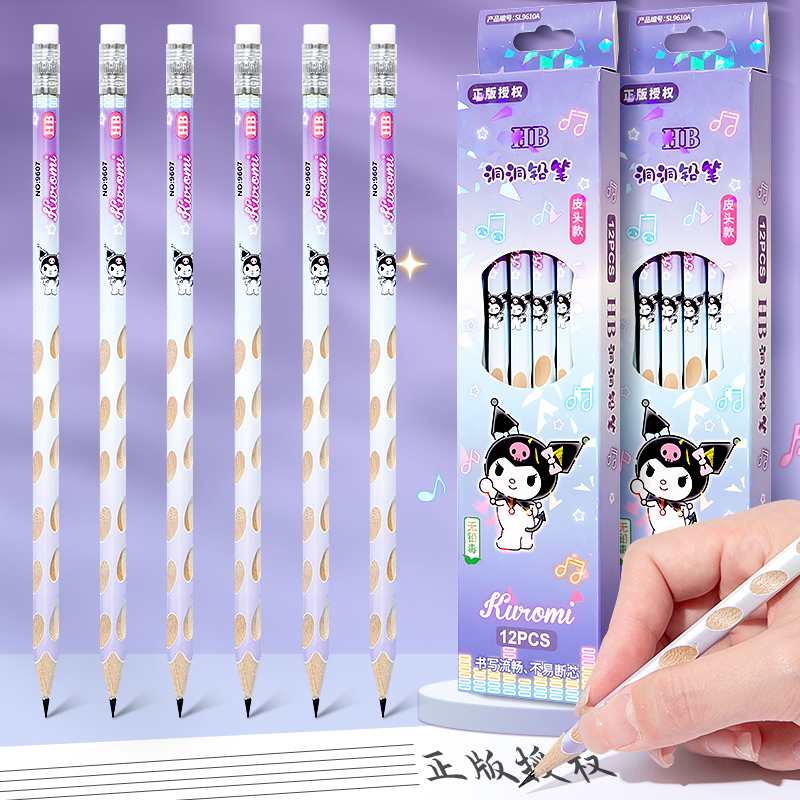 正版三丽鸥库洛米洞洞笔幼儿园专用矫纠正握姿铅笔三角杆小学生一二年级儿童书写字带橡皮擦头的初学者高颜值