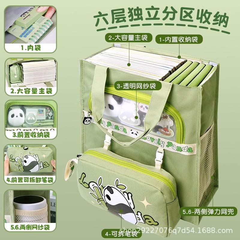 熊猫手提袋学生拎书袋专用补习袋文件袋作业收纳袋补课包牛津布