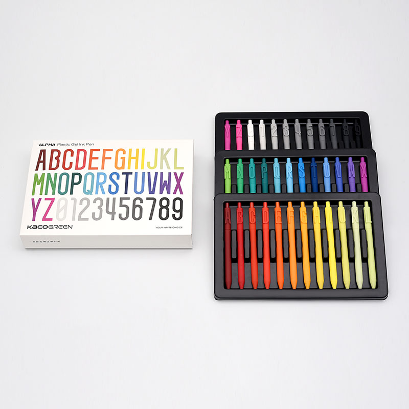 KACO ALPHA字母笔学生办公0.5mm 黑笔芯彩色创意按动式中性笔速干