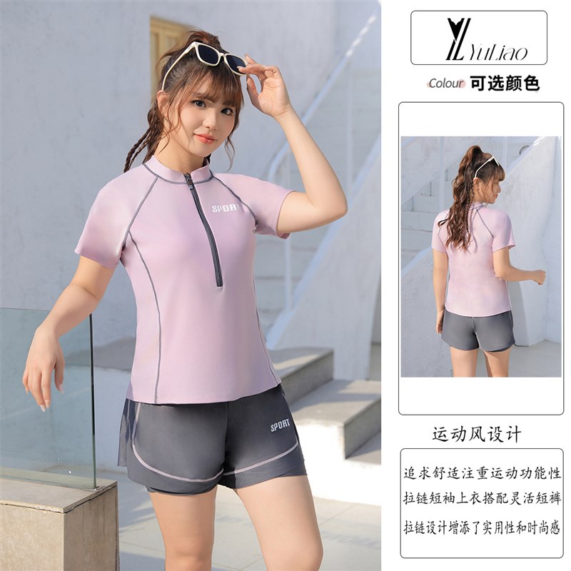 新款分体运动加肥MM保守小清新韩版两件套沙滩温泉度假泳衣女