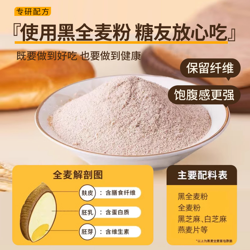 无糖全麦面包0脂减专用肥糖尿人正品官方旗舰店粗粮早餐孕妇代餐