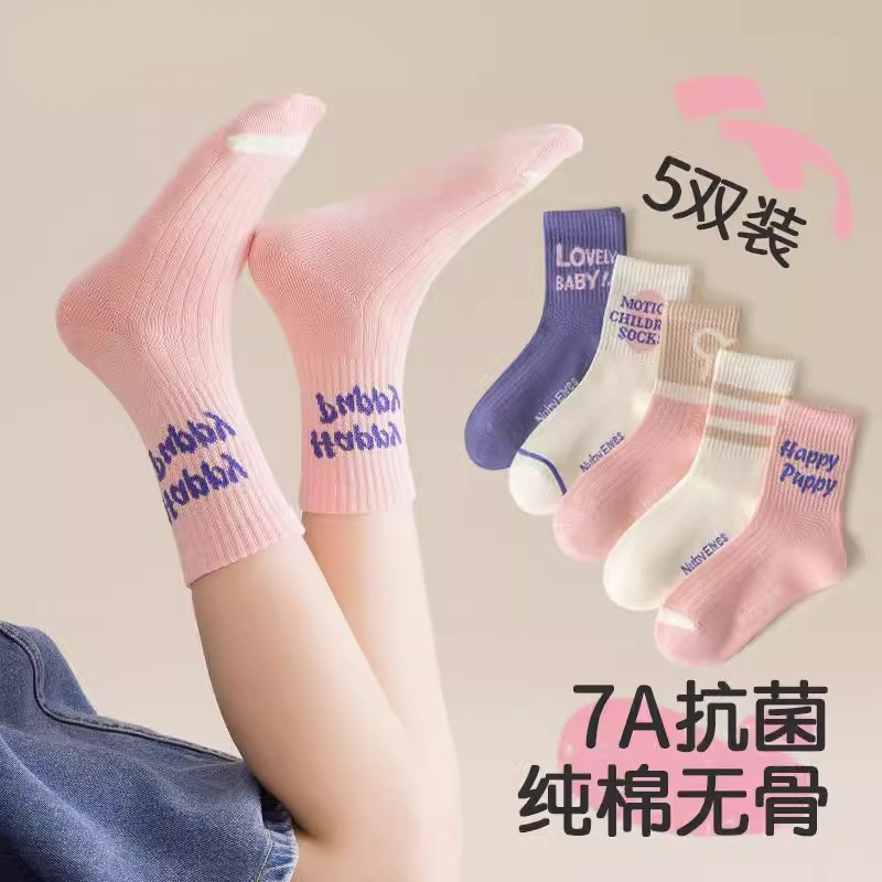 女童袜子春秋纯棉儿童秋冬防臭吸汗宝宝棉袜全棉女孩春秋中筒童袜