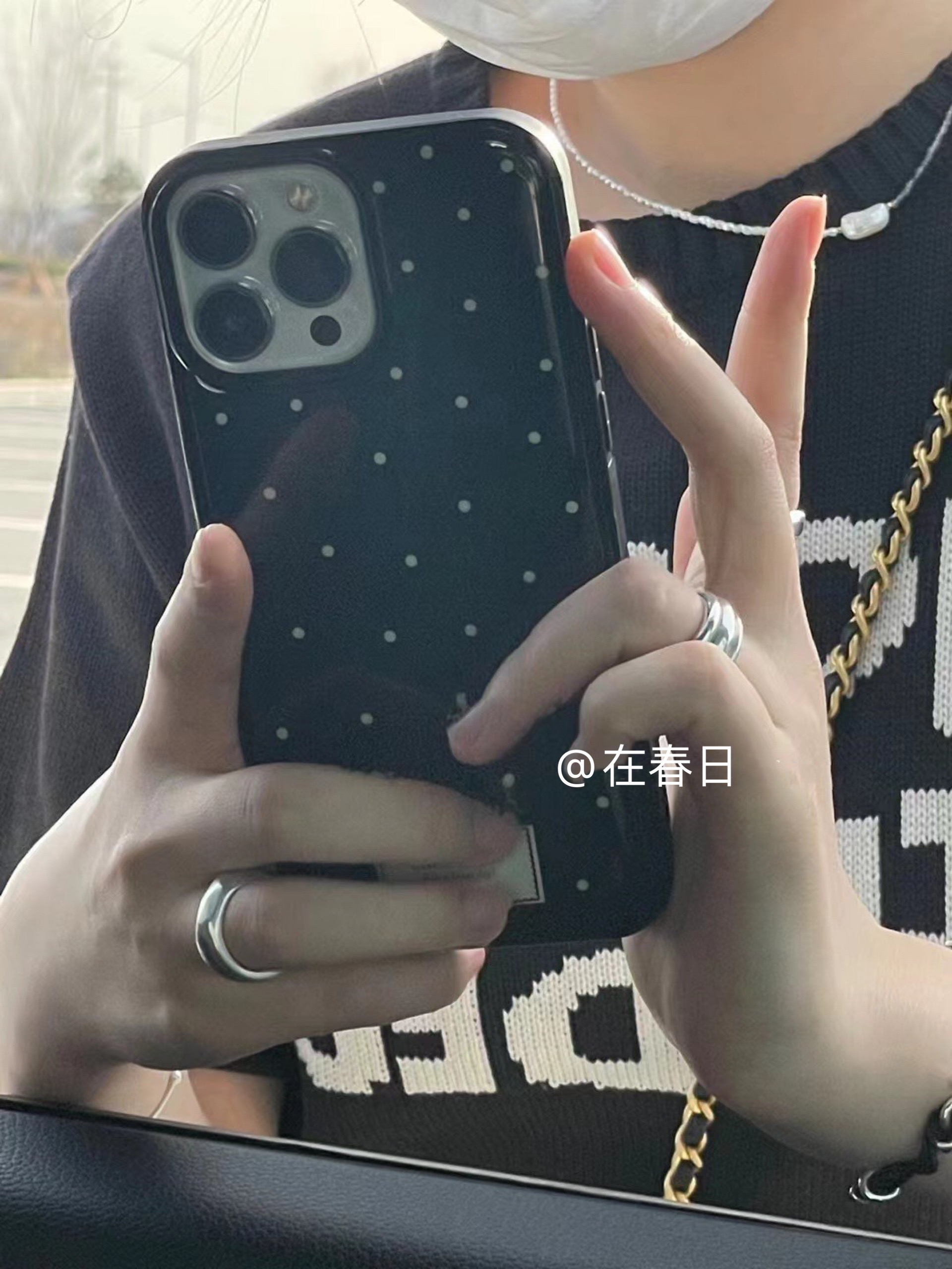 在春日韩国ins小众波点黑边手机壳15promax/13适用iPhone14pro/11/13promax/12/15新款16promax女生17promax