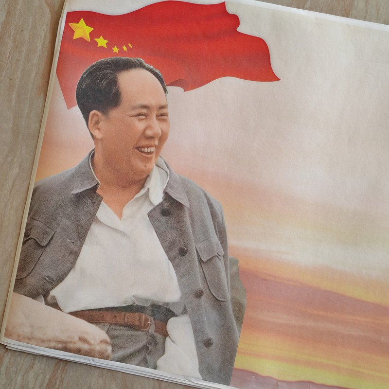 四六尺对开红色主题毛体宣纸条毛泽东头像