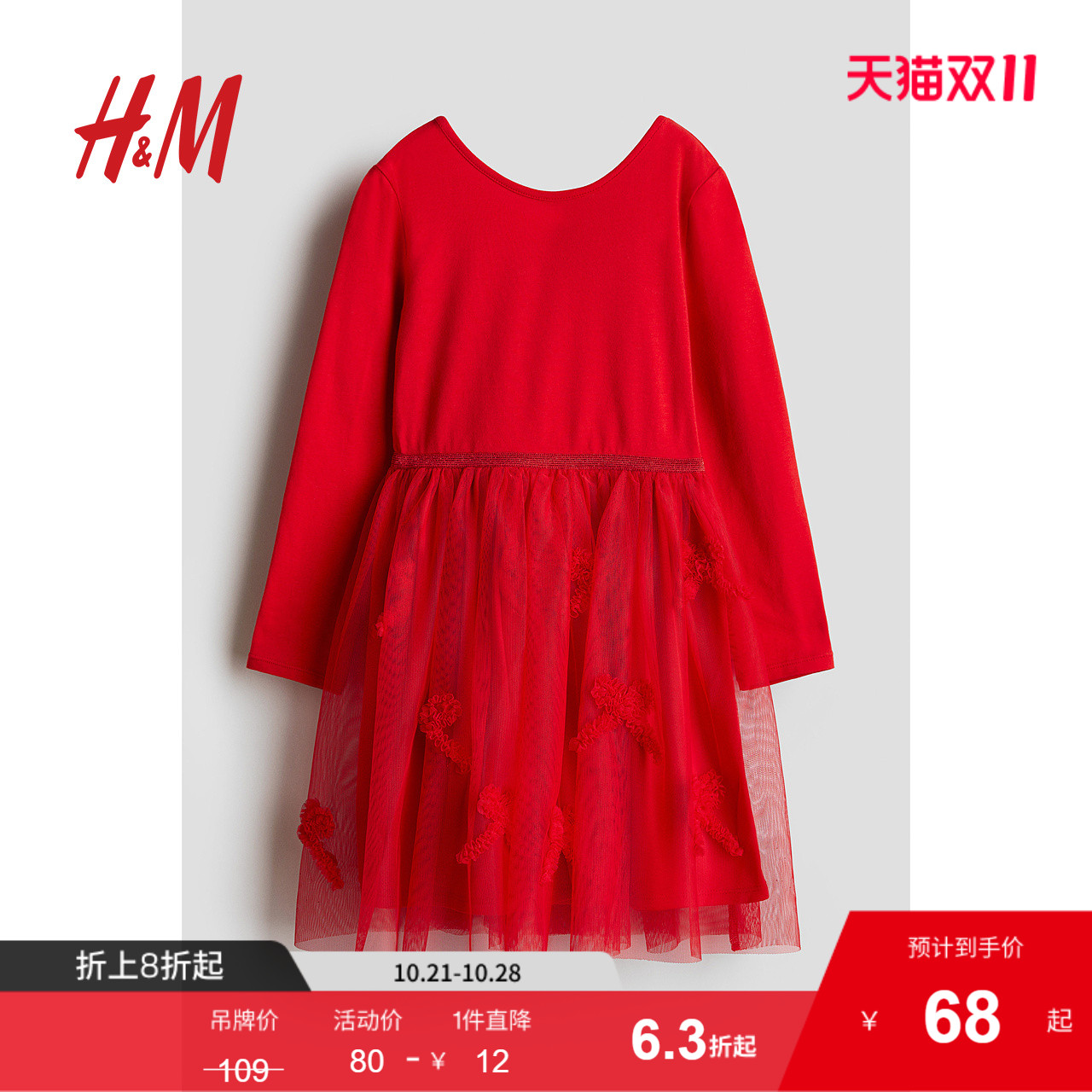 HM童装儿童女童连衣裙秋季节宽松薄纱裙摆红色公主裙1246266