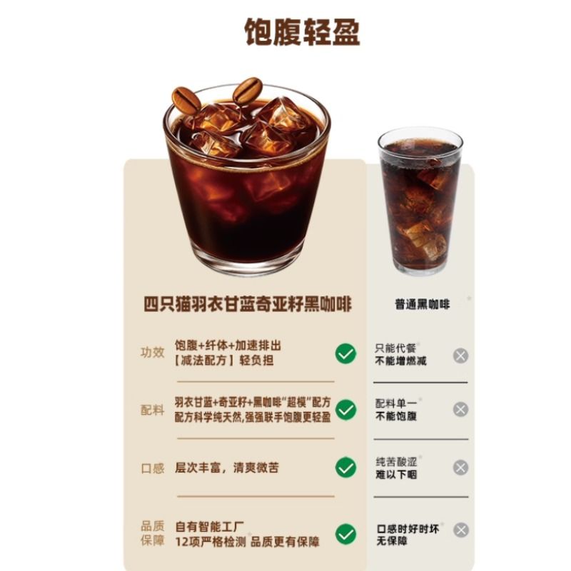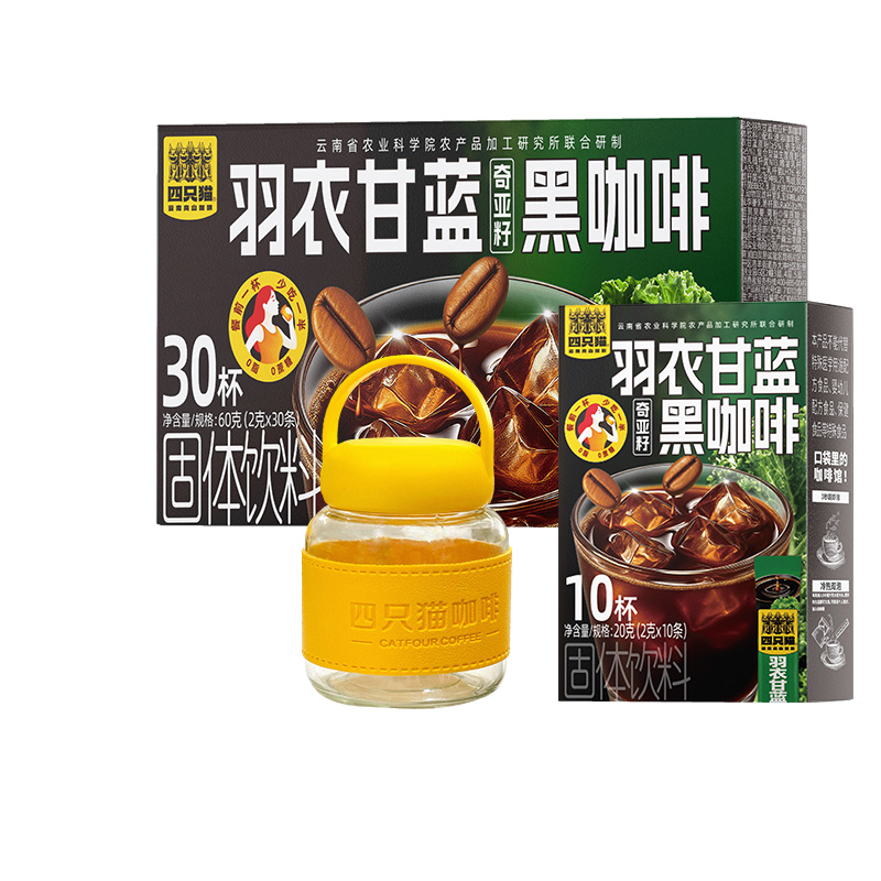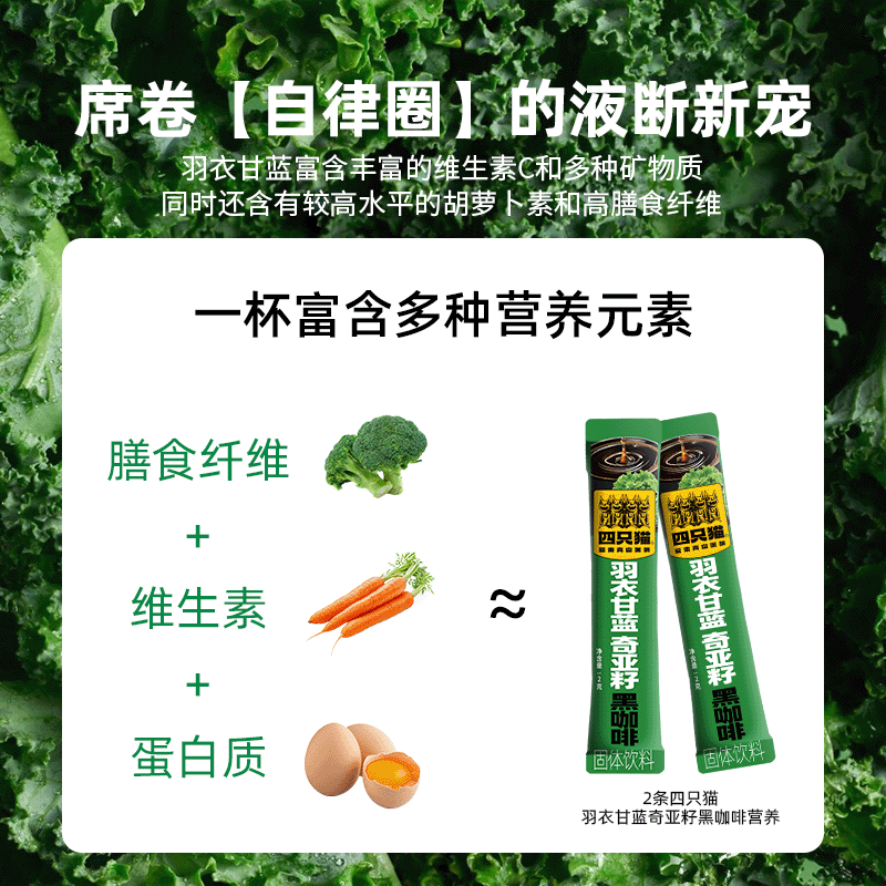 四只猫羽衣甘蓝膳食纤维饮料轻黑咖啡无糖0脂减燃肥提高代谢速溶