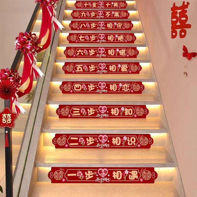 婚房布置结婚礼楼梯台阶踏步贴纸装饰扶手喜字贴套装婚庆用品大全
