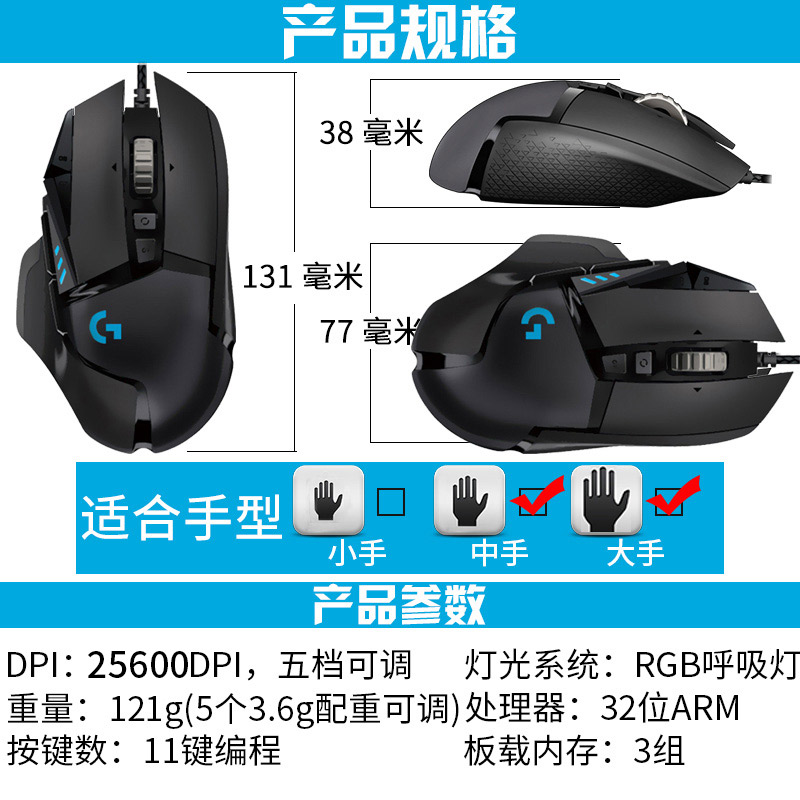 罗技G502HERO有线鼠标电竞机械游戏吃鸡cs打瓦专用笔记本电脑编程