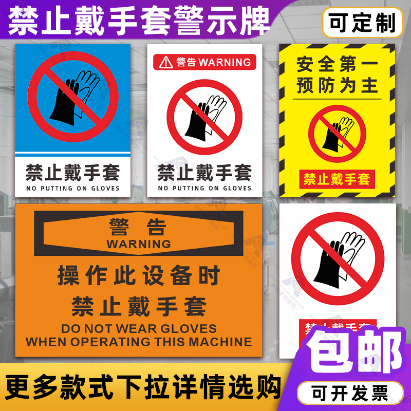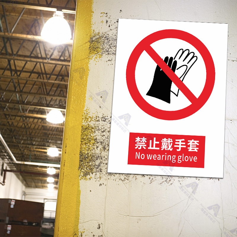 禁止戴手套警示牌标识牌当心操作此设备时禁止戴实验手套触摸温馨提示标志牌标识牌生产车间标语墙贴定做定制