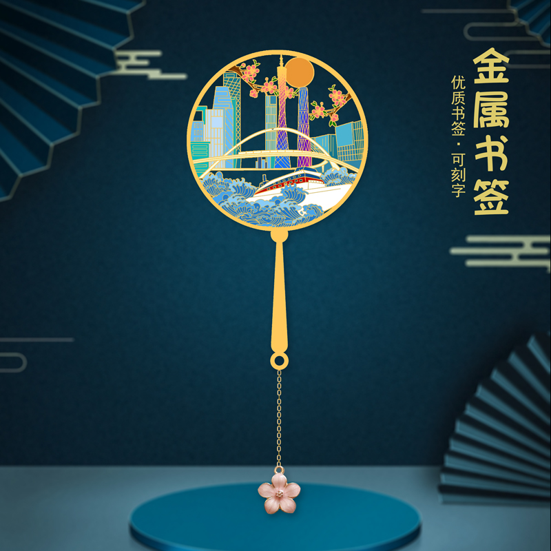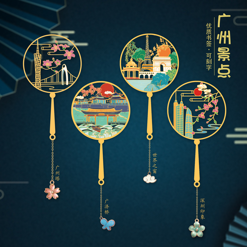 特色景区书签广州塔小蛮腰金属镂空团扇中国风旅游纪念礼品送同学