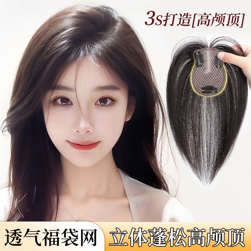 假刘海女自然前额头顶补发片高颅顶遮白发仿真人发八字刘海假发片