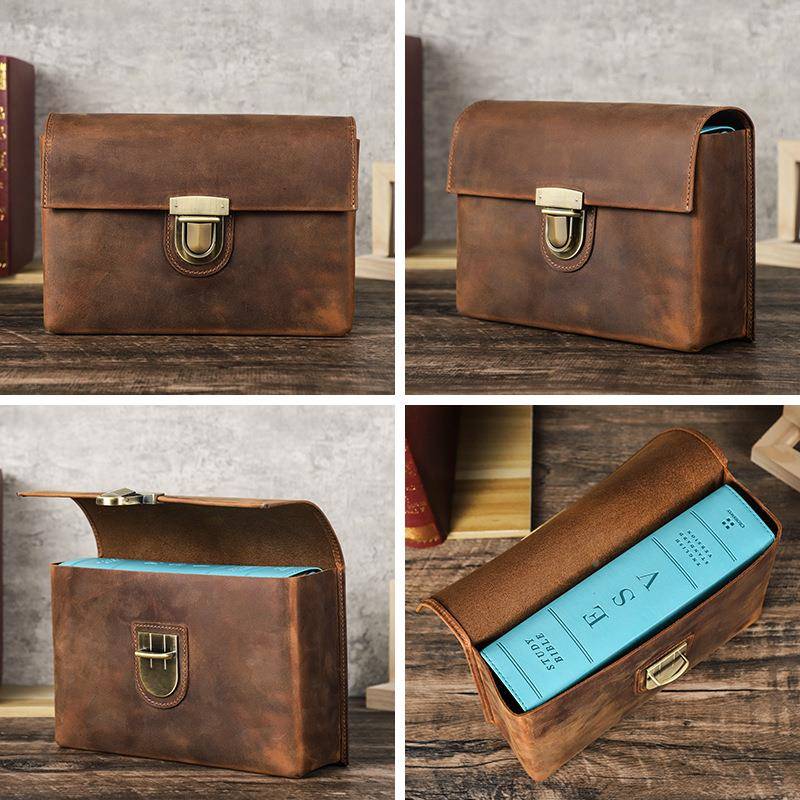 贸货外源疯马书套手制作长方形锁扣469皮翻工盖式书本保护套加厚