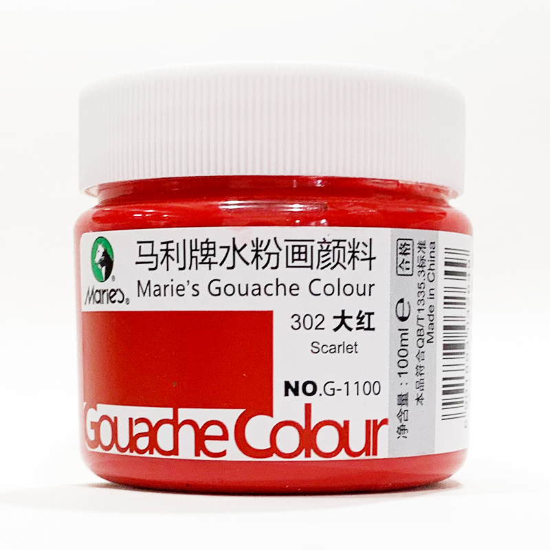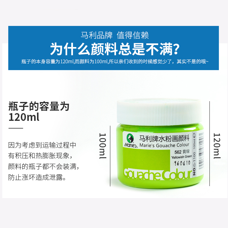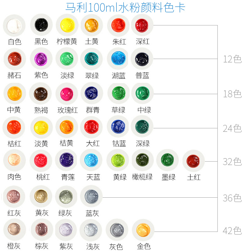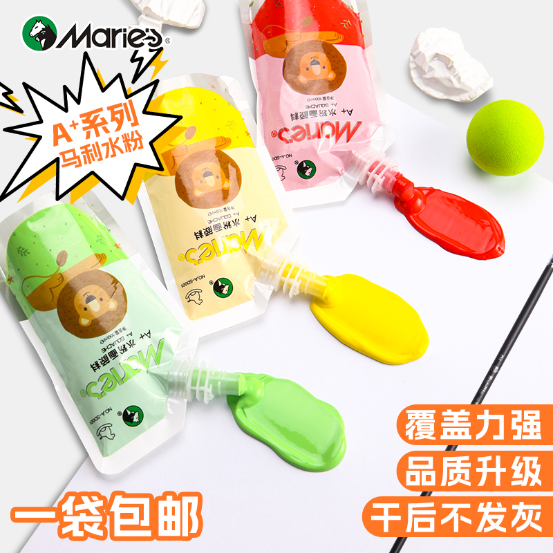马利牌水粉颜料100ML罐装初学者儿童美术补充袋装白色颜料套装学生用高级灰广告色彩画画工具马力牌水粉瓶装
