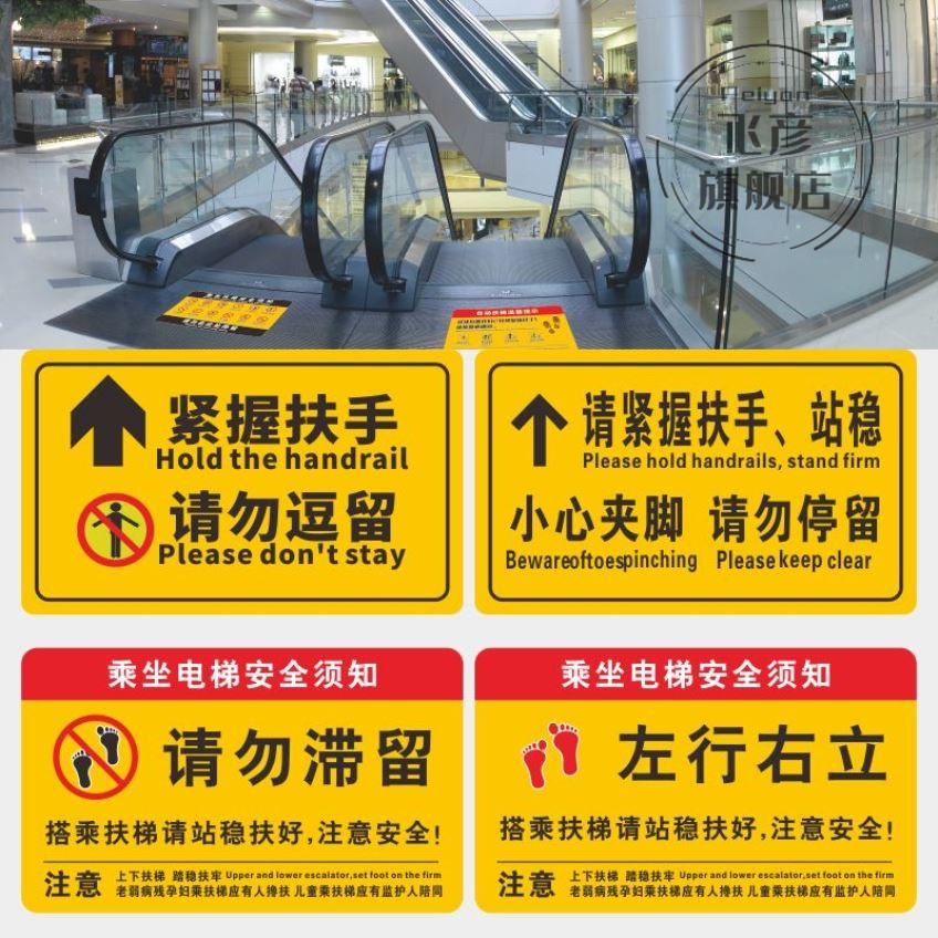 乘坐电梯扶梯安全须知地贴加厚斜纹地板膜防水防滑耐磨上下爬梯紧握扶手站稳扶好小心夹脚请勿在此停留标识牌