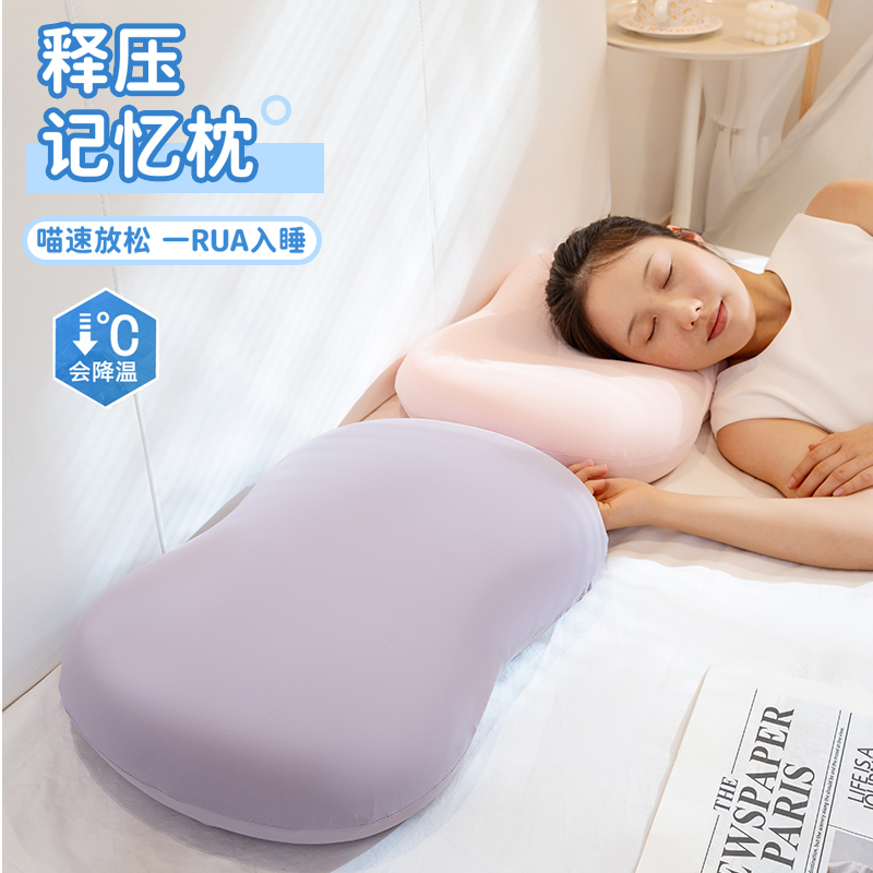 冰丝记忆棉猫皮肚枕护颈枕分区侧睡慢回弹不塌陷柔软助睡眠枕头