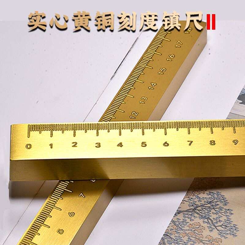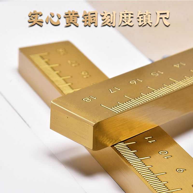 黄铜镇纸文房四宝书法镇尺压纸尺子创意多用途毛笔笔搁直尺刻度尺
