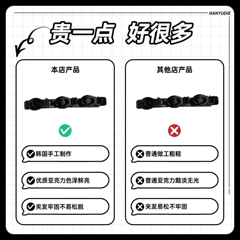 刘海一字夹专业彩妆造型黑夹子平头钢铁夹影楼化妆盘发卡发夹之王