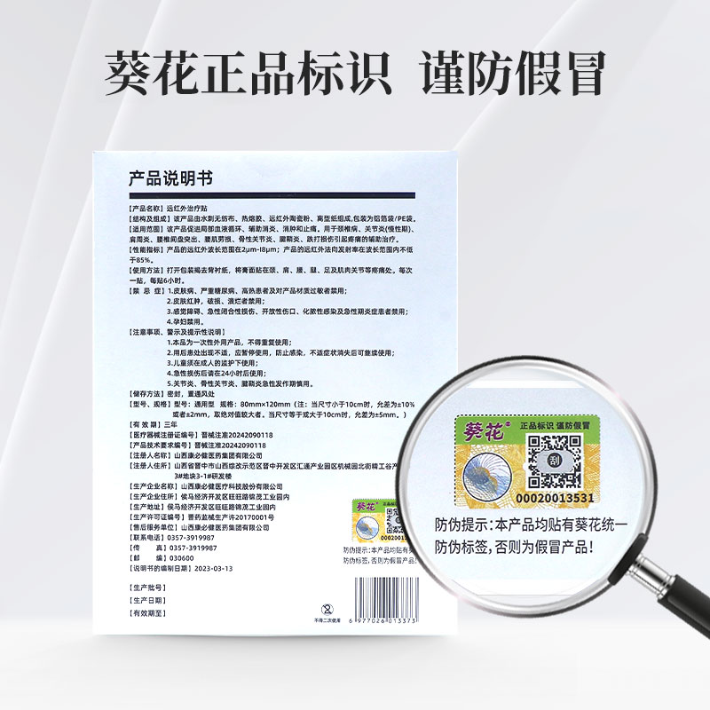 葵花远红外治疗贴颈腰椎关节疼痛劳损辅助消炎消肿止痛治疗膏药贴
