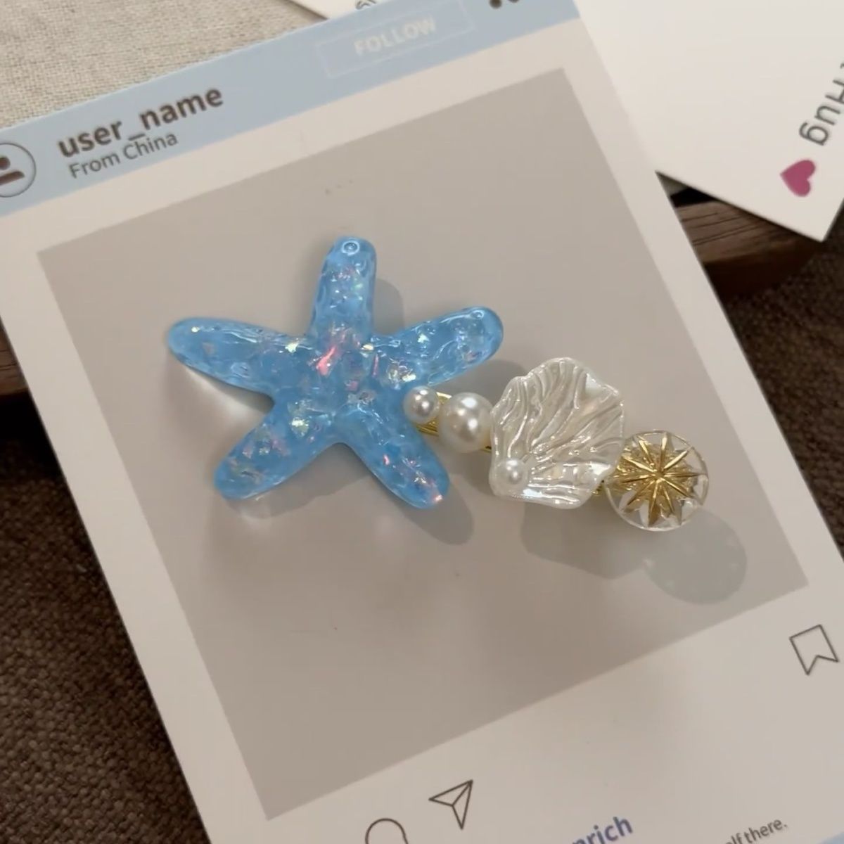 夏季发夹贝壳发卡海洋系列海星发饰珍珠刘海侧边夹子可爱夏日